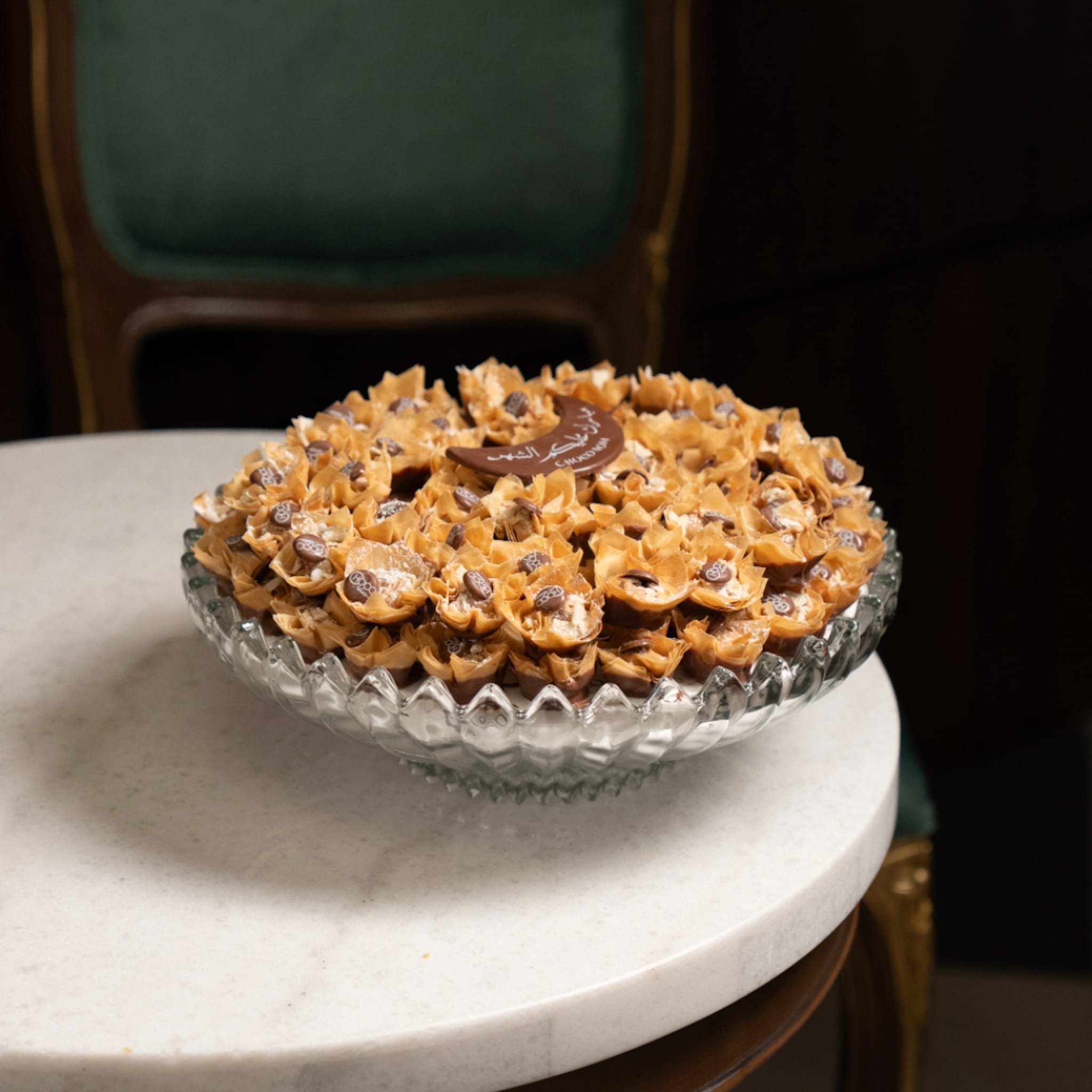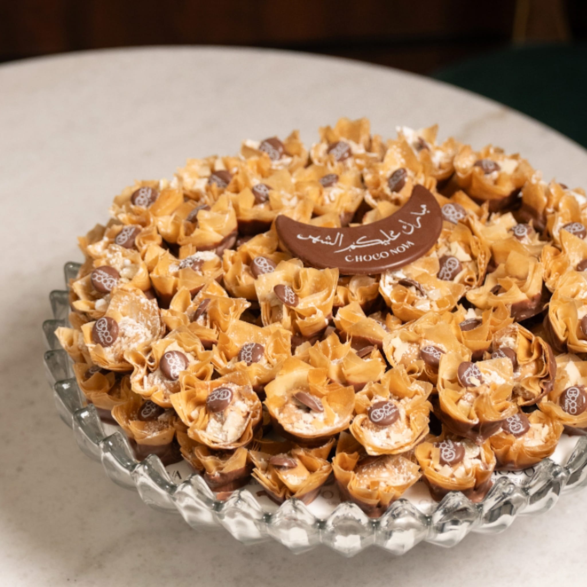 تحتوي على كيلو من البقلاوة بالشوكلت وحشوة برالين اللوز مع شرائح اللوز
