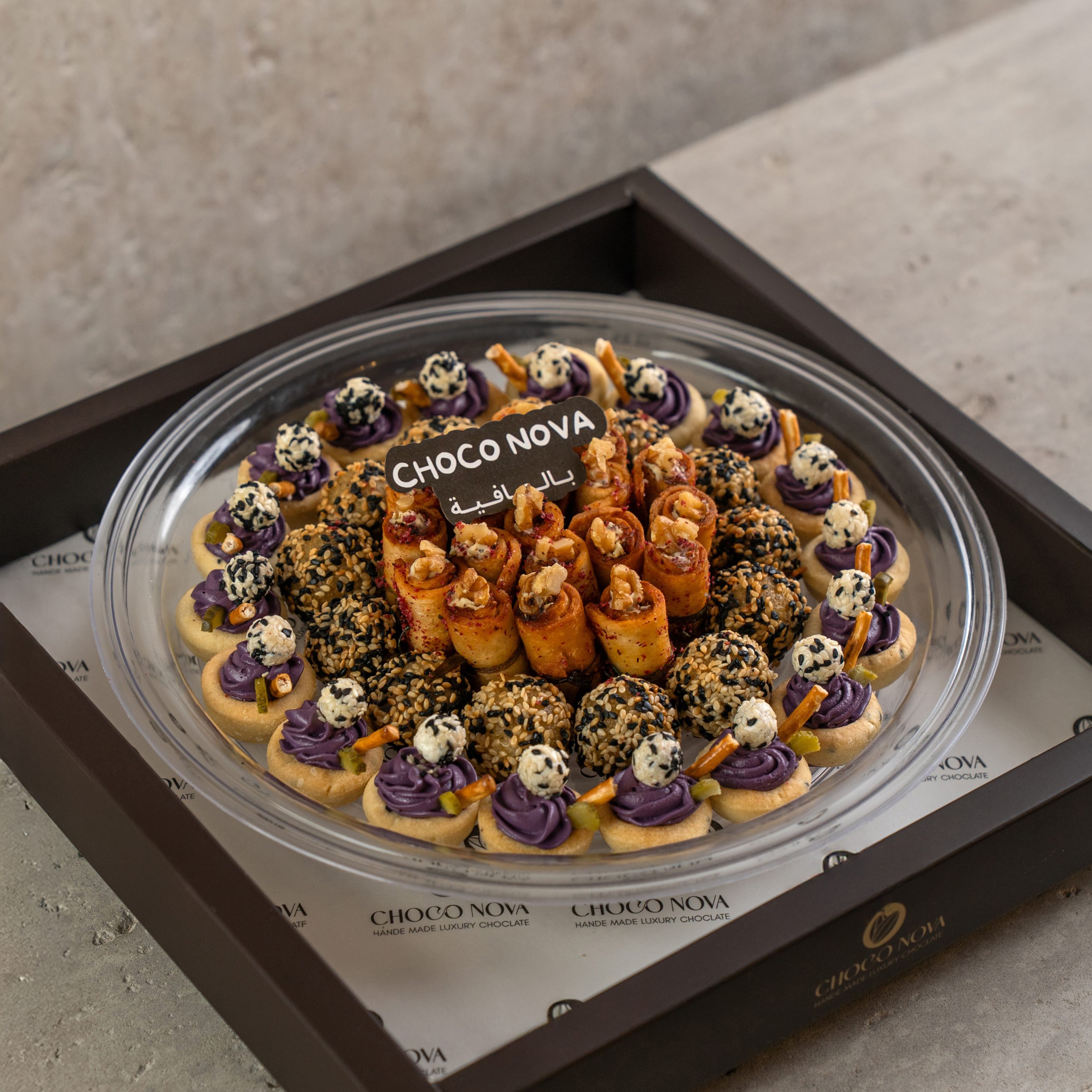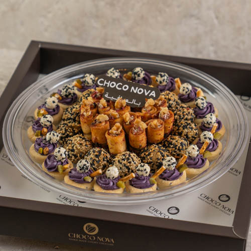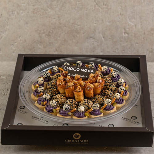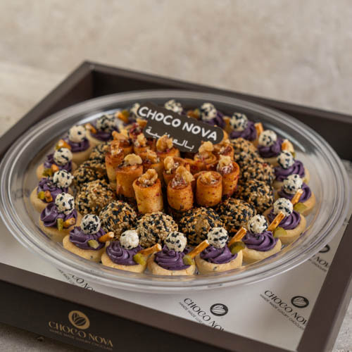 يحتوي علي 50 قطعة من الموالح المتنوعة من التشيكن رول وكبة الجبن وتارت المكدوس