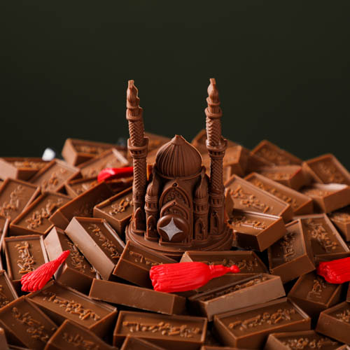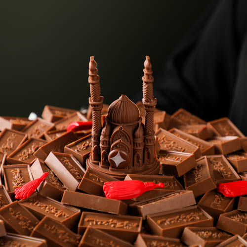 بعبارة عساكم من عواده مع ديكور مسجد من الشوكلت