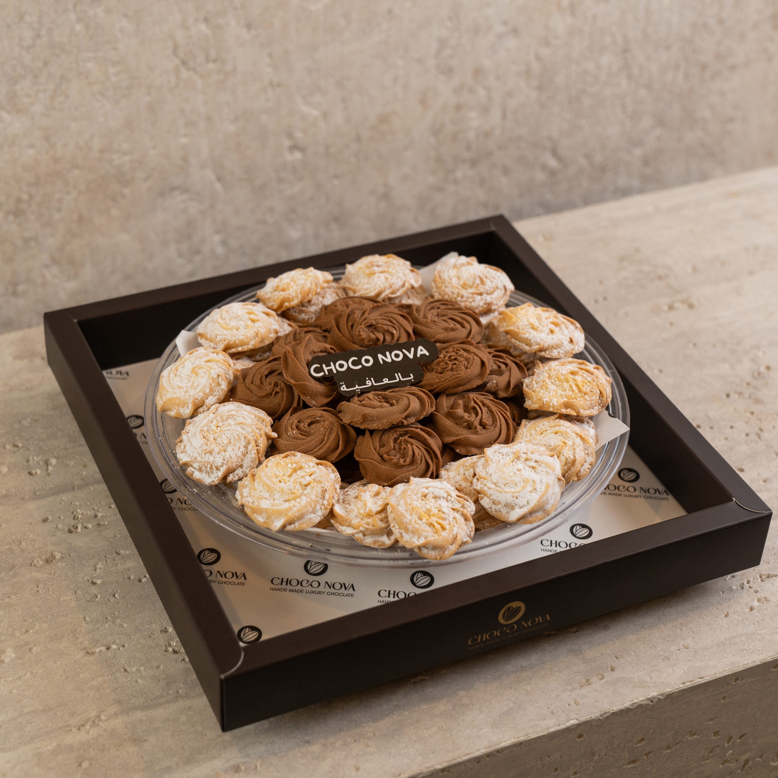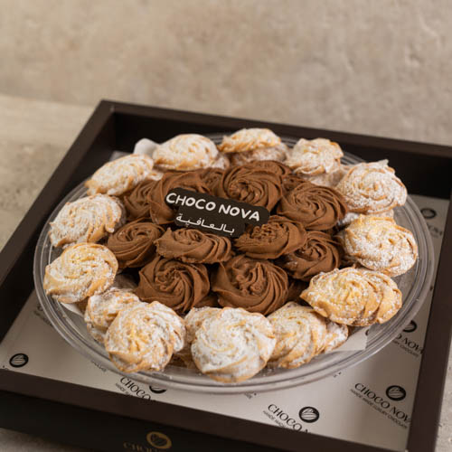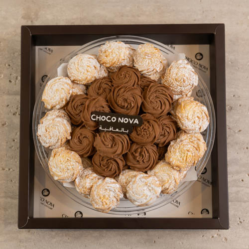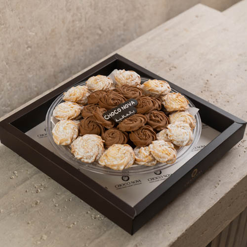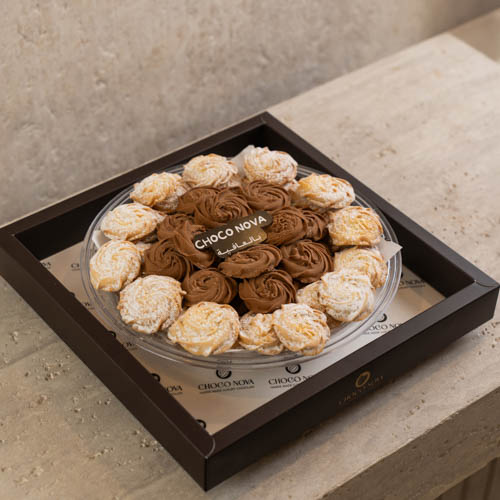 يحتوي علي 500 جرام من البيتي فور الهش الابيض والشوكلت